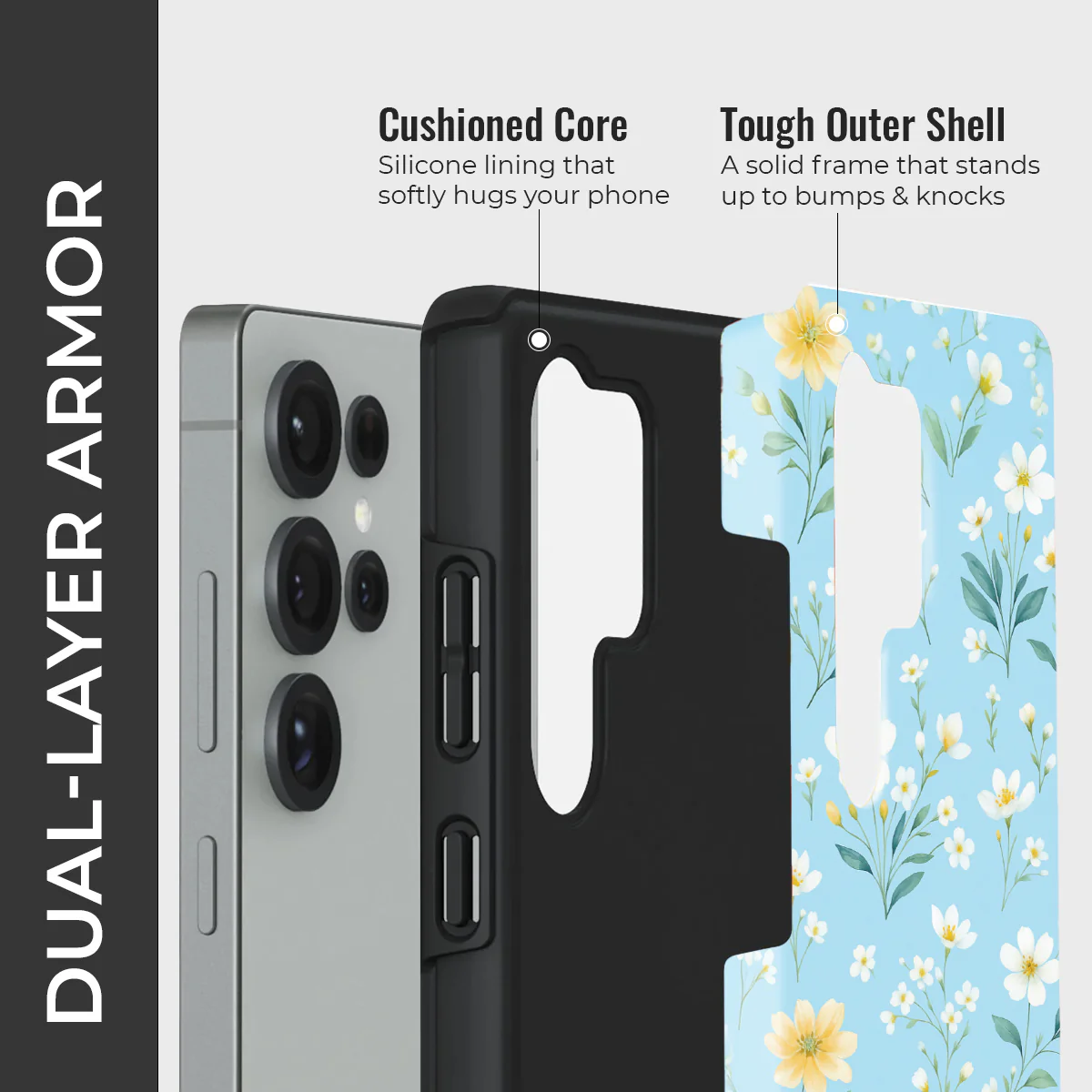 - Double-Layer Protection: Silicon interior cushions impacts + rigid PC exterior shields against drops and scratches.