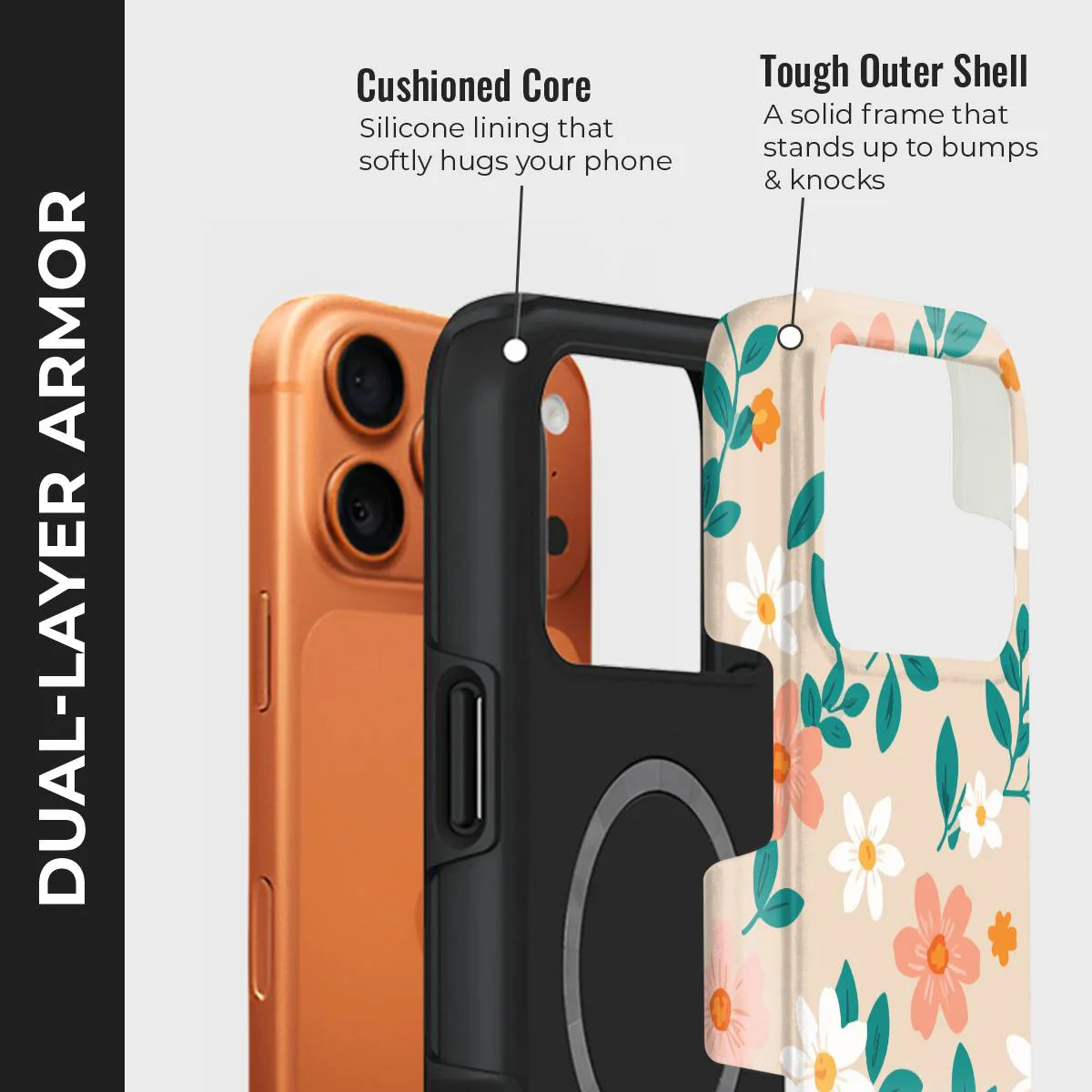 - Double-Layer Protection: Silicon interior cushions impacts + rigid PC exterior shields against drops and scratches.