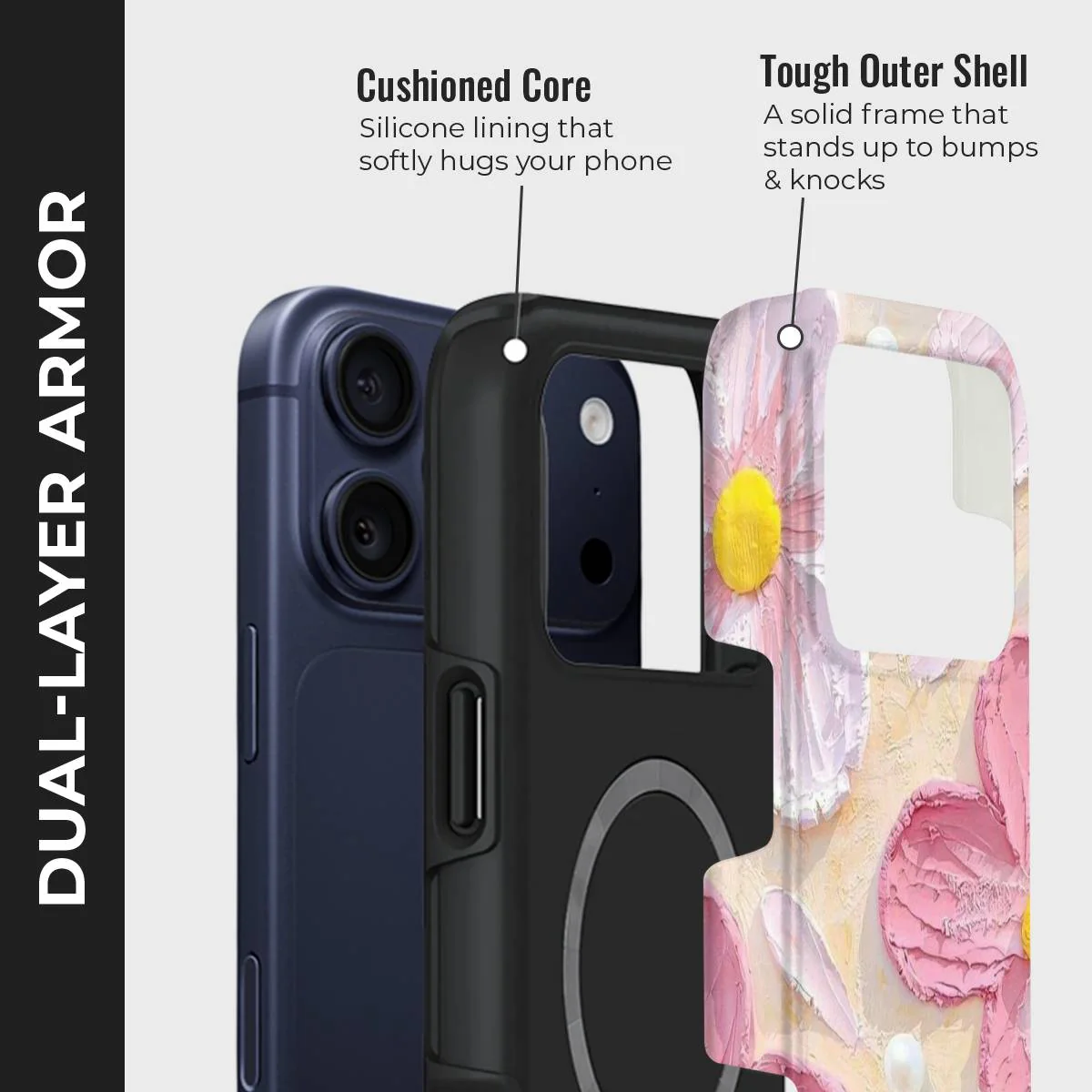 - Double-Layer Protection: Silicon interior cushions impacts + rigid PC exterior shields against drops and scratches.